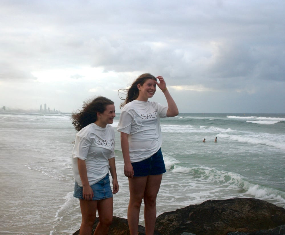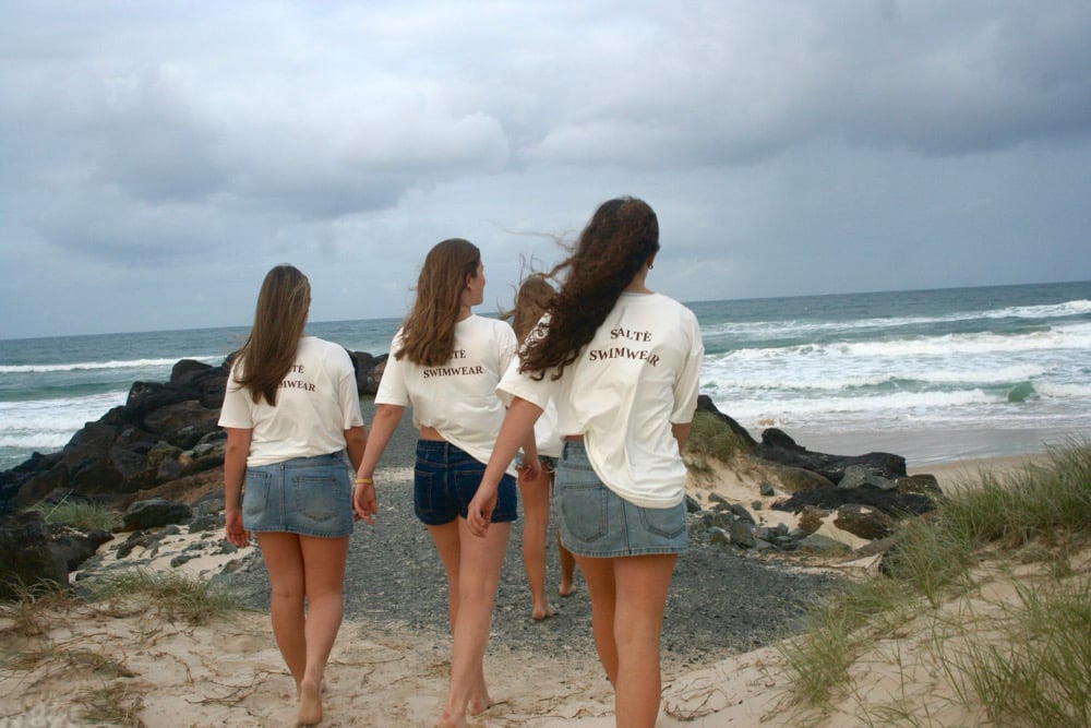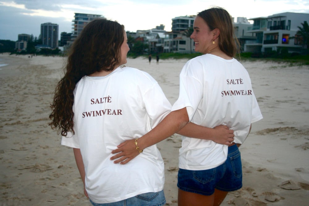 The Saltè Signature Tee is your oversized essential, cut in a relaxed silhouette with stretch for all-day comfort. Designed in a creamy neutral with warm brown Saltè detailing, it pairs seamlessly with swim, denim, or thrown over post-ocean skin.